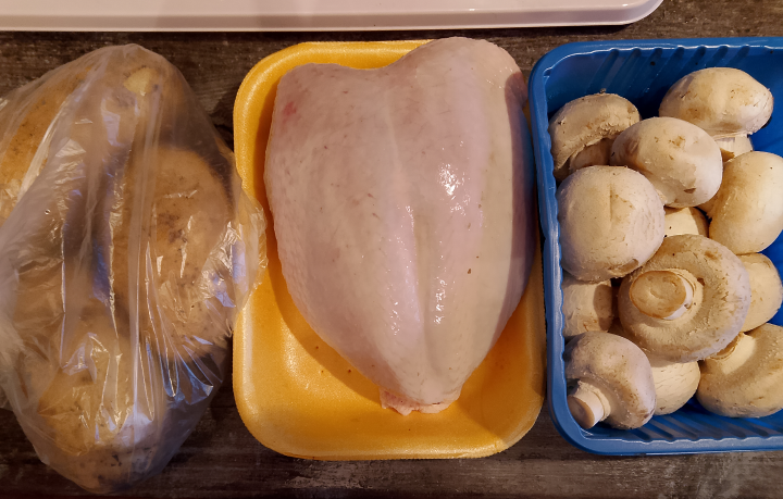 Картошка, курочка и грибы.