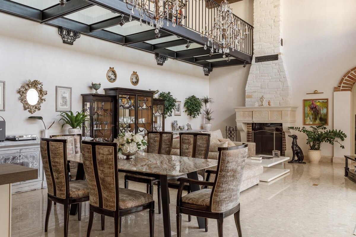 ГОСТИНАЯ ТОСКАНА Основной задачей наших дизайнеров было создание такой обстановки в гостиной этого дома, чтобы в новом интерьере сохранился дух уютного фамильного поместья, где за большим столом собирается все семейство, топится настоящий очаг, а хозяйка может не покидать круг общения, готовя фирменный воскресный пирог. Современная лаконичная кухня модного бренда и мебель из натурального дерева, созданная нашими мастерами МАРКЕТРИ вручную - великолепный прием, при котором эргономика и эстетика удовлетворяют все пожелания заказчика. Сервант в духе мебели эпохи Георга III, расписной комод в стиле шебби-шик, легендарный стул “Бабочка” разработки Маркетри и мебель для домашнего кинотеатра с высокой резьбой - все это организует единый ансамбль и создает неуловимое впечатление, что вся обстановка привезена в эту гостиную из разных уголков света. И не каждый гость догадается, что вся эта мебель создана нашими мастерами на фабрике МАРКЕТРИ (кликабельно), в самом центре южной столицы нашей