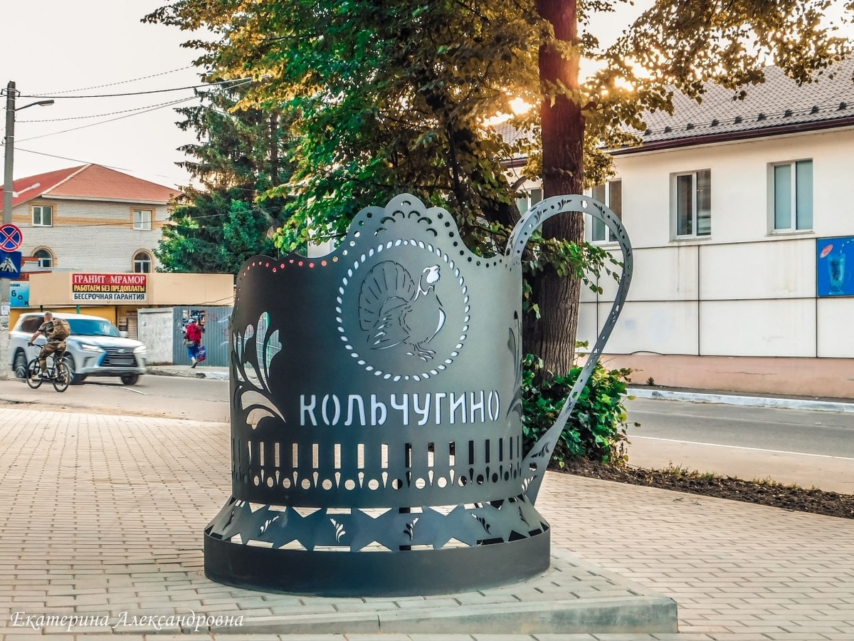 Новые арт-объекты украсили улицы Кольчугино Семья глухарей и подстаканник стали частью реализуемого масштабного проекта «Пешеходный маршрут по улицам города Кольчугино, рожденного металлом». Проект турмаршрута выиграл конкурс министерства предпринимательства и туризма. Район получил 5,2 млн рублей. Протяженность пешеходного маршрута - 3,9 км. В него входит 11 объектов показа: 6 музеев и музейных пространств, в том числе историко-краеведческий музей «Летопись родного края», центр истории «Заводов Кольчугина», частная арт-коллекция «Лягушки-путешественницы».