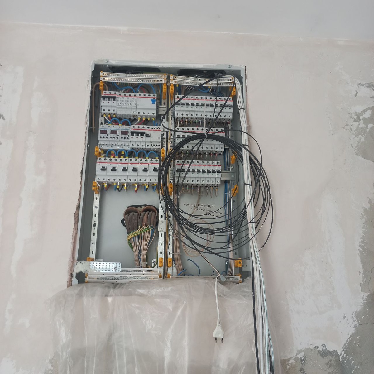 Первый этап работ провалился. Николаич наотрез отказался принимать розетки в спальне и кабинете. Рамки не установлены, несмотря на то, что все розеточные кишки на месте и работают исправно.