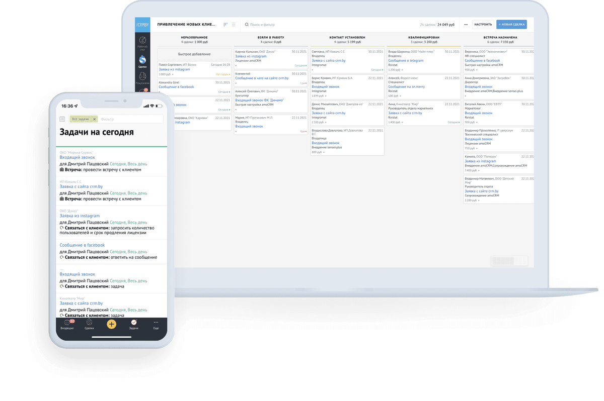 - Все клиенты под контролем. Каждый звонок, письмо, заявка — всё в одном месте. Вы никогда не потеряете важный контакт.