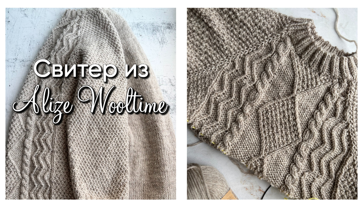 Это кажется невероятным, но я довязала себе свитер! Начала когда-то весной и успела закончить аккурат к моему дню рождения :) Сегодня я расскажу подробно как вязала, какой расход, какой узор. Мне давно хотелось связать себе новый свитер. У меня уже есть один, который я вязала себе 20 лет назад, будучи беременной старшими девочками. С ним всё отлично до сих пор, кстати. И я его ношу в холода, и старшие девчонки тоже надевают. Но очень захотелось новый :) Свитер с фото я вязала из какого-то старого мохера, который нашёлся дома. На груди и на спинке интарсией вывязаны яркие ромбы + у него есть капюшон. Помню, что осилила спинку и перед, а рукава и капюшон довязывала за меня моя бабуля - у меня не хватило энтузиазма :)) На этот раз мне захотелось однотонный светлый свитер с узором спереди. Пряжу я выбирала из своих последних фаворитов - Alize Wooltime. Хотелось понять каков расход на взрослое изделие да и вообще - красивые там цвета и толщина подходящая. Один моток 100 грамм 200 метро
