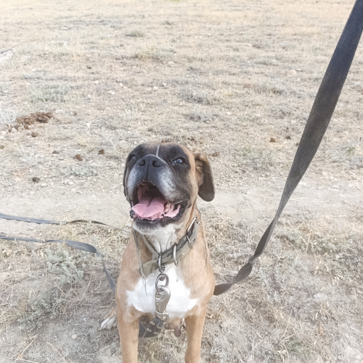 Больше двух недели в Судаке держится +40 в тени. Это значит , что на солнце - смерть. Ламка и Бэлла вполне адаптированы к такой погоде, по крайней мере на прогулке бодро носятся. Доберманы отказываются уходить от кондиционера и гуляют в тени на участке. А с Апельсином все сложно. Выпустить ее на участке нельзя , она умеет лазить по рабице и прямой наводкой идёт в птичник. Объяснить ей, что птички "моё" и "нельзя" у меня пока не получается. Она не уйдет с нашей территории, но напакостить может изрядно. Поэтому прогулки. Две недели мы гуляем по 10-15 минут мелкими перебежками, потому что даже заход солнца не приносит прохлады. Через 10-15 минут Апельсин начинает хватать воздух широко открытой пастью и разворачиваться в сторону дома. Такие короткие прогулки - это плохо , но мне кажется, что перегреть боксера ещё хуже! А сегодня пришли облака и ветерок! И мы вышли на полноценную прогулку Я не знаю , кто из нас доволнее, но побродили мы по холмам с удовольствием !