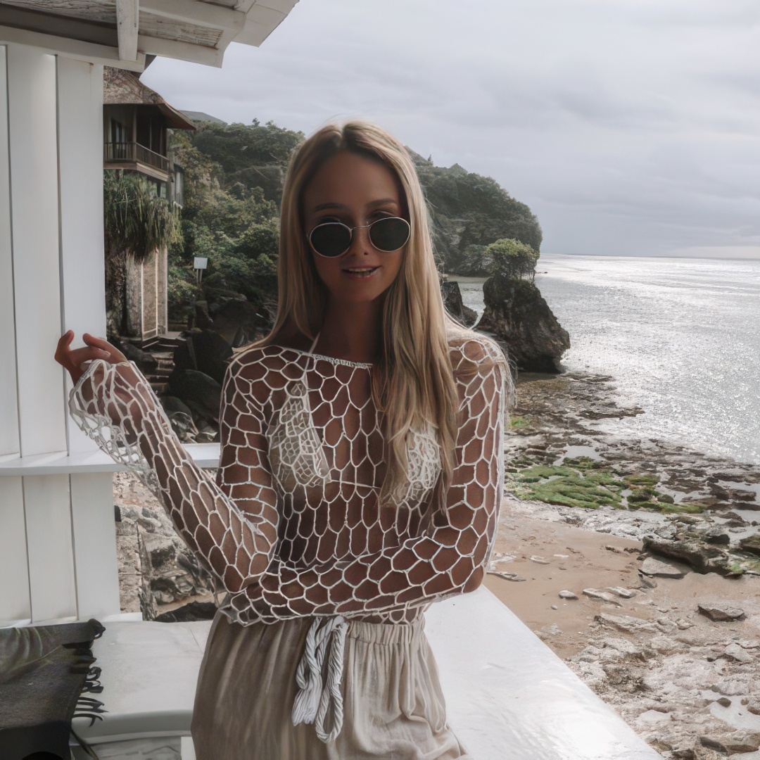 Этим летом подиумы и улицы захватил один из самых интригующих и стильных трендов — вязаная одежда сеточкой. Если вы думали, что сетка — это только для пляжа, то самое время пересмотреть свои взгляды. Сегодня "голые" и полупрозрачные вещи из трикотажной сетки — это настоящий писк моды, который позволяет создавать как расслабленные повседневные, так и дерзкие вечерние образы. Секрет популярности вязаной сетки кроется в её универсальности и способности придать любому образу лёгкость и непринуждённость. Она идеально подходит для жаркого лета, позволяя коже дышать, и при этом выглядит невероятно стильно. Дизайнеры предлагают широкий спектр моделей — от топов и платьев до юбок и брюк, выполненных в самых разнообразных техниках вязания и из различных материалов. Как носить вязаную сетку этим летом? Топ-сетка как самостоятельный акцент: Помимо многослойности, топ-сетка прекрасно смотрится как самостоятельная вещь, особенно если вы выбираете модели с интересной вязкой или необычным кроем.