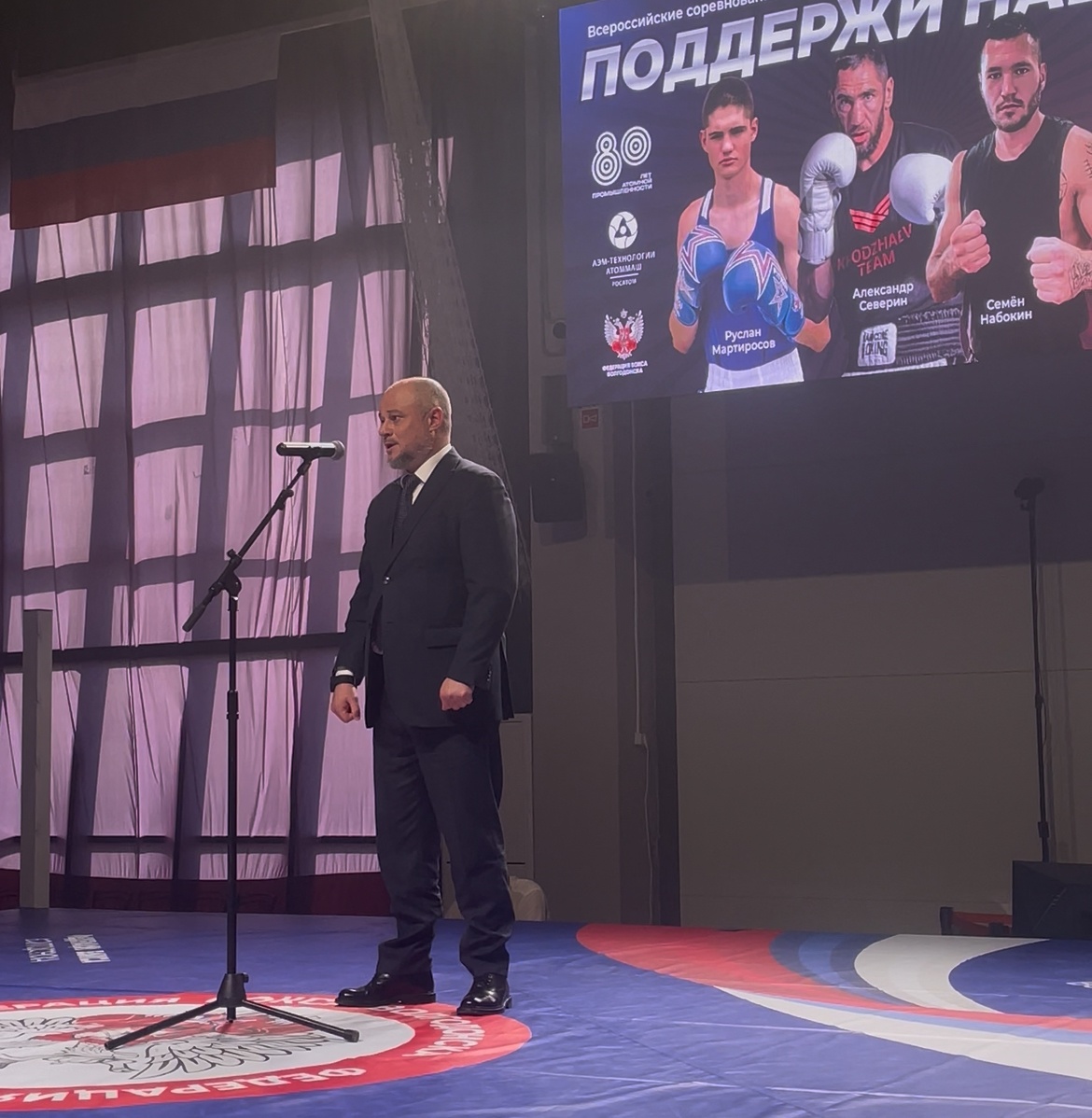 И те спортсмены самого высокого уровня, которые выйдут сегодня на этот ринг, покажут пример тем ребятам, которые совсем в юном возрасте приходят в секции, начинают заниматься спортом, боксом, единоборствами, любой физической активностью, которая не просто укрепляет их силу и дух, которая ложится в основу могущества нашей страны.