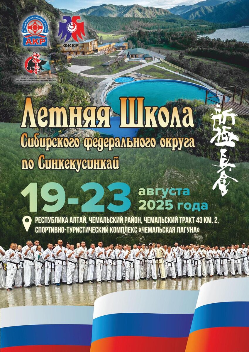 #фскнсо_анонс 19-23 августа 2025 Республика АЛТАЙ, спортивная база "Чемальская Лагуна" ЛЕТНЯЯ ШКОЛА СИБИРСКОГО ФЕДЕРАЛЬНОГО ОКРУГА ПО СИНКЁКУСИНКАЙ На данные тренировочные мероприятия и предстоящие КЮ-тест (с 4 кю и выше) и ДАН-тест (1 Дан) заявлены более 200 участников. Председатель экзаменационной комиссии: 🥋 шихан, Бранч-Чиф WKO 👊 НАСИРОВ Захир Гейбатович 5 Дан (г. Красноярск); Члены экзаменационной комиссии: 🥋 шихан, Бранч-Чиф WKO 👊 ЛИТВИНОВ Вячеслав Валентинович 5 Дан (г. Новокузнецк) 🥋 сэнсей, Бранч-Чиф WKO 👊 КИТКИН Андрей Юрьевич 4 Дан (г. Новосибирск) 🥋сэнсей, Бранч-Чиф WKO👊 РАСОВ Ярослав Александрович 4 Дан (г. Барнаул)
