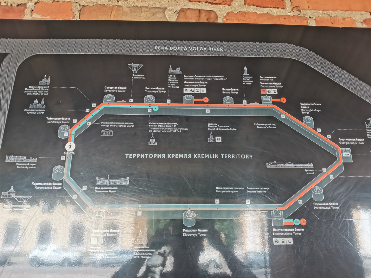 Привет всем! Если у вас всего один день на посещение этого чудесного города, то ловите что можно успеть за 1 день Ориентируйтесь на себя. У всех разный темп. Итак, выспавшись и позавтракав, мы из района, где сняли квартиру, отправились в исторический центр города. Ехать на автобусе около 25 минут. С парковками из-за наплыва туристов логично бывают сложности. 1. Нижегородский Кремль. Вход на территорию свободный. Есть выход к смотровой, туалеты, детская площадка, кафешка. Есть несколько вариантов экскурсий - обзорная по территории кремля, по участку стены (гиды очень интересно рассказывают историю) и можно взять просто входной билет и самостоятельно пройти всю стену, это был наш вариант. Отправились мы вдвоём со старшей дочкой , а муж с младшей остались гулять в тенистом саду кремля рядом со смотровой площадкой. 2 часа муж наслаждался видами красавицы Волги в тени на лавочке, пока младшая спала. Ведь сбылась его мечта - Егор впервые увидел Волгу. Весь проход стены у нас вышел около