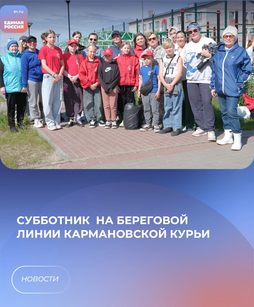 Активисты ТОС «Моя Кармановка» приняли участие во Всероссийской экологической акции «Нашим рекам и озёрам — чистые берега», которая традиционно проводится по всей России с 2008 года. Мероприятие прошло вдоль береговой линии Кармановской курьи и было направлено на улучшение экологической обстановки в водоохранной зоне. Субботник собрал активных и неравнодушных жителей округа, которые своими силами навели порядок на территории. В рамках мероприятия участники привели в порядок прилегающую территорию, убрали мусор и сухую растительность. К работе присоединились представители Ресурсного центра добровольчества, уполномоченный по правам ребенка, волонтёрское движение «Серебряные волонтеры» НАО, ТОС «Моя Кармановка» и активисты Партии «Единая Россия». Координатор проекта «Школа ЖКХ» Партии «Единая Россия» Вера Авенировна Дроздова добавила: «Это был не просто субботник, это встреча единомышленников, которые заботятся о месте, где они живут. Начать с нуля всегда не просто, но я верю, ч