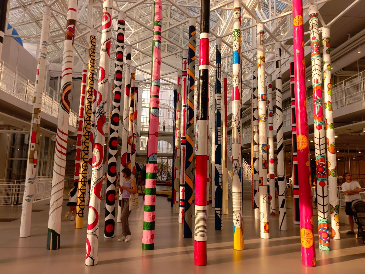#катитсяжизнь Расписной "лес" внутри ГЭС-2. Борьба смыслов: что важнее - искусство или польза? Сторонники пользы скажут, что из этих брёвен можно было бы собрать небольшой сруб под дом или дачу, в крайнем случае, пустить их на дрова для одинокой деревенской пенсионерки. Художники ответят, что это акт творческого самовыражения и создание новых смыслов через народную (любую другую) мудрость. Например: Не мудрено дерево срубить, а мудрено лес вырастить. Лес тогда шумит дружно, когда в нём деревьев много. Срубили деревья — прощай птицы. Лес поит, кормит, одевает, укрывает, согревает. Возле леса жить — голодному не быть. Неказисто дерево, да вкусен плод. Кто лес любит и знает, тому он помогает. Лесом шёл, а дров не видел. В лесу дуб - рубль, а в столице по рублю спица. Шёл бы ты в лес, да там и исчез. Заблудился в трёх соснах. Ну и так далее. А мы не заблудились и мнения на этот счёт не выражали. Сфотографировались и дальше пошли! #рыжаяженщина