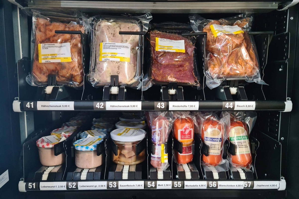 Во время пандемии в Германии владелица мясного магазина Свея Маркс установила вендинговый автомат с мясом, чтобы клиенты могли покупать продукты без очередей и общения с продавцом. Сегодня в стране наблюдается бум вендинговых аппаратов, торгующих свежим мясом, сосисками, колбасками, всякими аддонами к ним, типа соусов и картофельного салата.