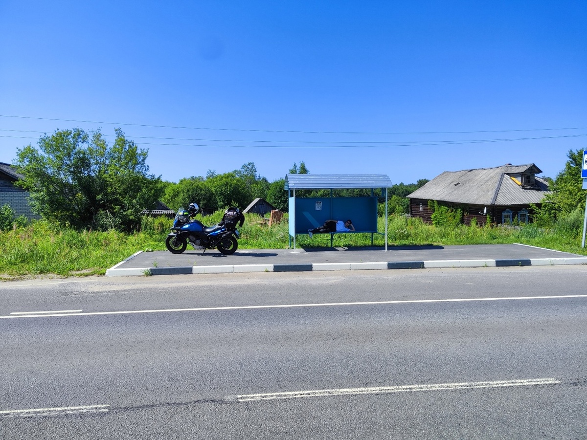пать, вижу павильон, закатываю туда мотик ложусь на лавочку и засыпаю))поспав час на лавочке нормально так дав храпака жена будит от