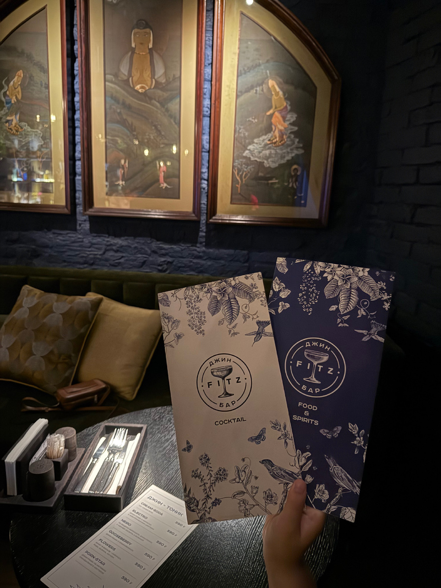 Признаюсь, пока мой муж защищает нашу Родину и делает так, чтобы мы спали спокойно, я редко хожу в бары. Но тут ситуэйшен, два крутых товарища: концепт-шеф кухни - Александр Ермаков и шеф-бармен - Роман Морозов: снова собрали что-то интересненькое в Fitz Gin Bar. И я не могла не зайти не попробовать. Плюс бар в соседней двери со вкусным бистро Di Torino, которое мы любим, и где все те же в главных ролях. Что классного в Fitz: Коллекция из 70+ этикеток, все основные стили джинов, от лондонского сухого до олд тома, слоу, дженеверов и выдержанных сортов. Бармены готовы приготовить две дюжины классических коктейлей на любом джине из коллекции бара. Стоимость напитка зависит от выбранной категории джина (Best Gins – 1 290 руб., Good Choice – 890 руб., New Experience – 690 руб.). Ну и прикольная тема - джин тоники на кранах! Так обычно пиво в барах делают, а тут джин тоники собственного производства. Выбор классный, интересный: и с электрическими цветами, и с крыжовником, и кре