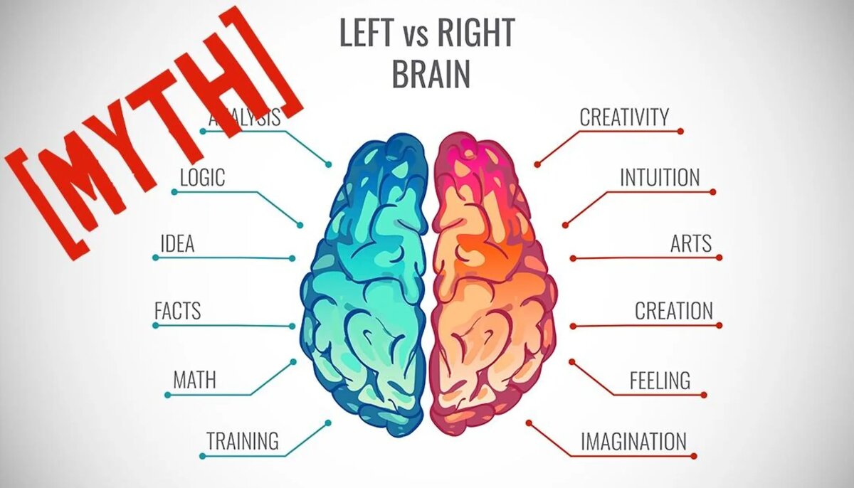 Сотни книг по самопознанию, тысячи тестов в интернете, лекции тренеров по личностному росту, все они часто используют простую, но ложную идею: будто бы мозг человека работает строго по схеме «левое — логика», «правое — креатив».