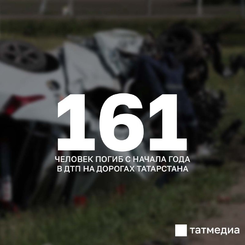 ❗️🚓С начала 2025 года в Татарстане произошло 1750 ДТП, в которых погиб 161 человек