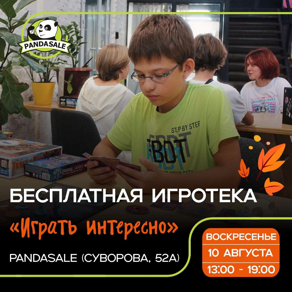 💥 Приглашаем на бесплатную игротеку 10 августа. Сделайте своё воскресенье незабываемым! 📍 Где: Суворова 52а ⏰️ Когда: 10 августа, с 13:00 до 19:00 🗣 Ведущая: Ульяна Коновальцева ➕ Участие: бесплатно Что вас ждёт? • новинки 2025; • игры для детей и взрослых; • незабываемые впечатления; • новые знакомства. 📞 Вопросы? Звоните: +7 (908) 177-87-17 🎁 Заказать игру 📎 Правила посещения мероприятий 🤓 Список игр, в которые играем: 1. Манчкин 2. Колонизаторы 3. Ticket to Ride Европа 4. Цитадели Classic 5. Каркассон 6. Мачи Коро 7. Шакал Архипелаг 8. Взрывные котята 9. Черепашьи бега 10. Соображарий 11. Азул 12. Скоростные каракули 13. Таймлайн Твист. Сквозь Века 14. Корова 006 15. Смешанный лес 16. Трио 17. Спящие короли 18. Воображарий 19. Коварный Лис 20. и многие другие... #PandaSale #PandaPlay