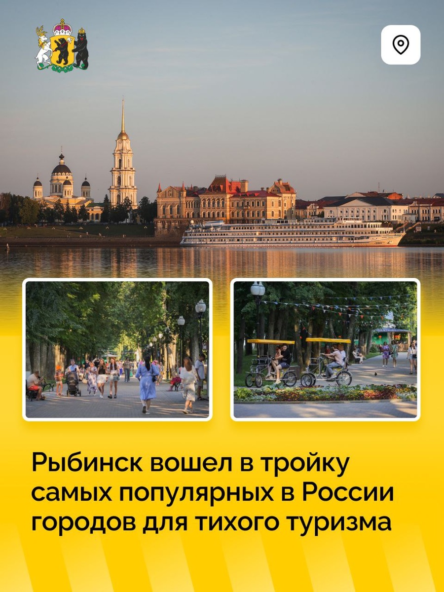 Рыбинск — в топ-3 городов России для тихого отдыха💫 Рыбинск вошёл в тройку самых популярных направлений для тихого туризма, уступив только Сортавале и Серпухову. В этом году спрос на поездки в наш город вырос на 20%, а его доля в таком формате путешествий достигла 12%. Популярность Рыбинска растёт благодаря уютной атмосфере, развитию инфраструктуры и новым туристическим проектам. ✅В регионе активно строят отели, глэмпинги и кемпинги, а предприниматели получают поддержку для их создания. Ярославская область уже входит в десятку самых привлекательных для туризма регионов страны. А осенью многие путешественники совмещают поездку в Рыбинск с посещением других городов Золотого кольца. 🙌