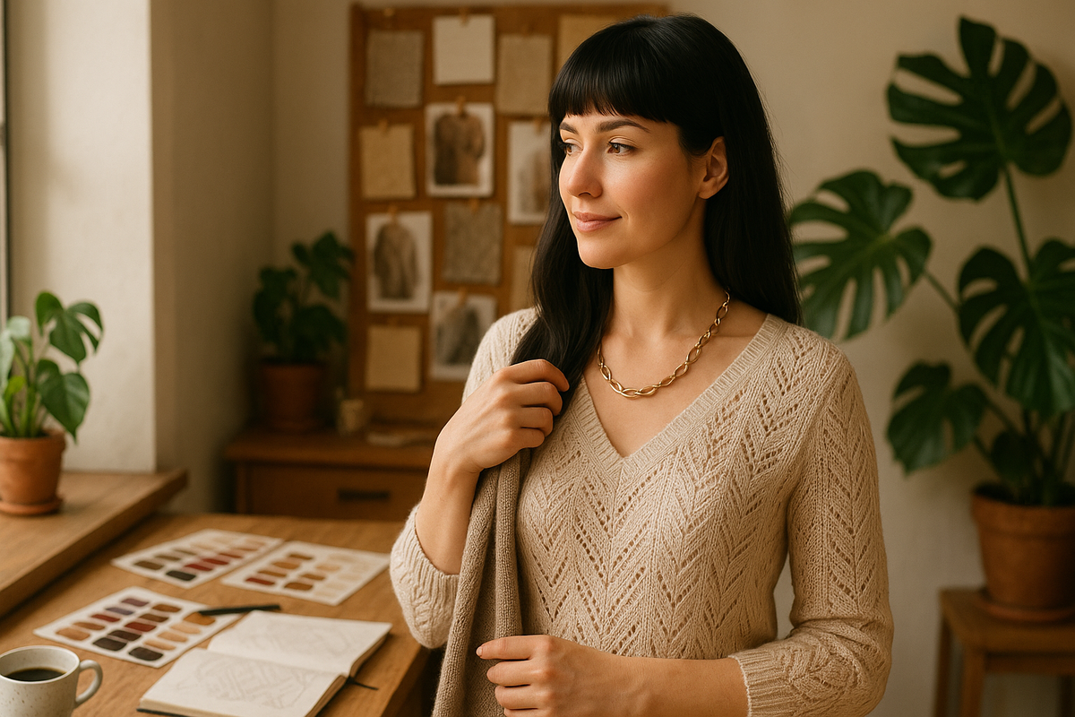 Если клиент предпочитает вещи с выраженными чевронами, ромбами, нарядной вязкой — это признак стремления к слоистости и многогранности в облике. В окрашивании такие сигналы читаются как рекомендация избегать ж