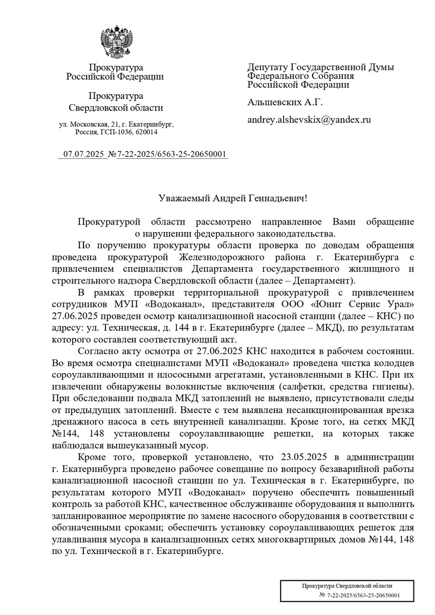 Жители ЖК «Семицвет» на Технической, 144 уже неоднократно жаловались на перебои с водоснабжением, затопления нечистотами, воду желтого цвета. В ответ «Водоканал» пообещал установить насосное оборудование большей мощности, решетки для улавливания мусора. Но что особенно поразило. Прокуратура пишет, что системы водоснабжения в многоквартирнике находятся в аварийном состоянии. Эксперт высчитал, что физический износ составляет от 61 до 80 процентов. Только под замену. А дом, на минуточку, сдан в 2016 году. Новое качество доступного жилья – написано в одном из рекламных материалов. Нет слов.