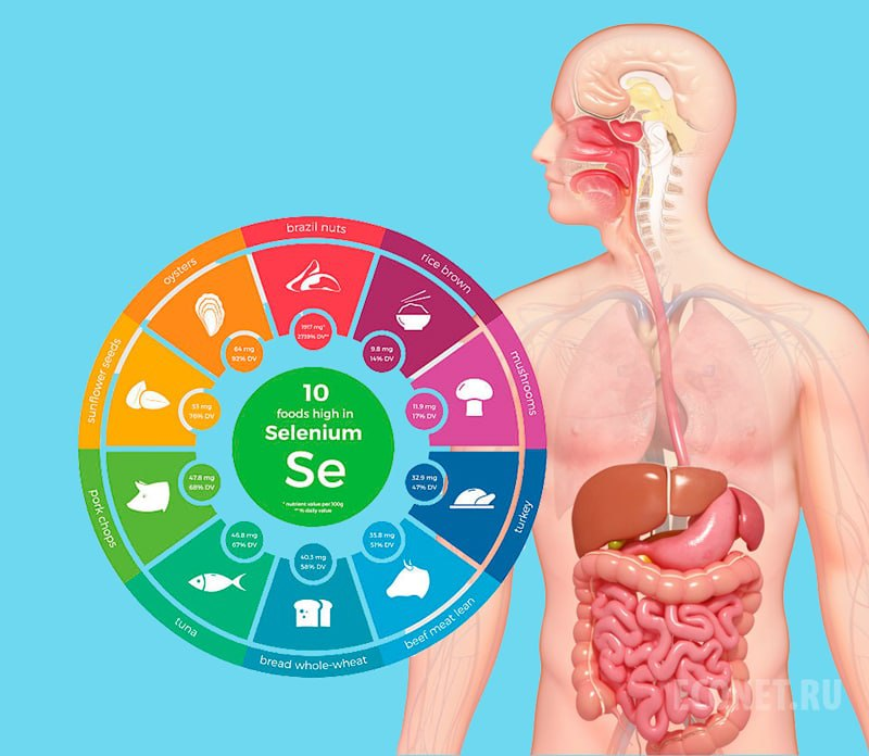 Селен относится к 6-й группе элементов периодической системы Д.И. Менделеева, имеет атомный номер 34. Он был открыт в 1817 г. шведским химиком Й.Я. Берцелиусом, который предложил назвать его Selenium с символом Se, от греческого σελήνη — Луна. Селен является эссенциальным (жизненно необходимым) микроэлементам и играет выполняет важные функции в организме человека: • препятствует развитию опухолевых процессов и преждевременному старению организма (нейтрализует и выводит ксенобиотики, активирует витамин Е); • поддерживает баланс восстановления и окисления клеток; • усиливает иммунореактивность организма (усиление клональной экспансии Т-клеток, ускорение развития цитотоксичности лимфоцитов для уничтожения опухолевых клеток, повышает активность естественных киллерных (NK)-клеток); • снижает риск развития сердечно-сосудистых заболеваний (активирует фермент цитохромоксидазу, образует кофермент Q10 в дыхательной цепи синтеза АТФ клеток, нейтрализует токсины); • стимулирует обменные процессы в