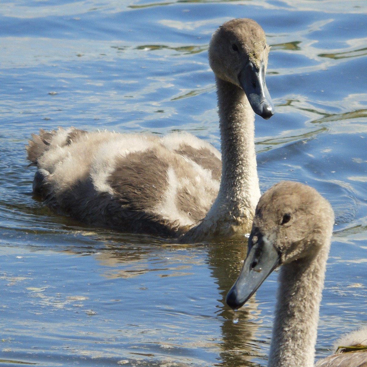 Молодые шипуны и один из их родителей на Городищенском озере