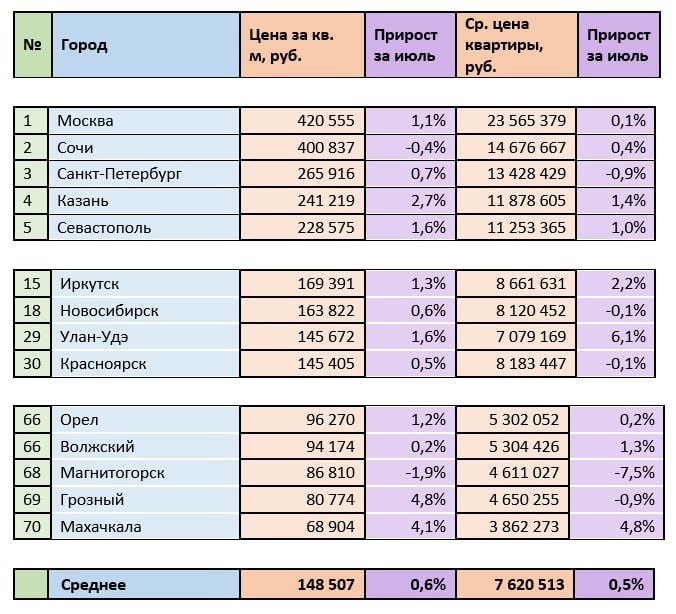 Цены на новостройки в Иркутске растут быстрее среднероссийских Данные приводит портал «Мир квартир». «Итоги июля в этом году выглядят немного лучше, чем в прошлом: положительная динамика прослеживается в большем числе городов, чем тогда, и в среднем по стране цены – не намного, но все же – чуть больше выросли, – констатирует Павел Луценко, генеральный директор федерального портала «Мир квартир». – Сейчас, когда ставка ЦБ, хоть и медленно, но поползла вниз, застройщики получили надежду на выход из затянувшейся стагнации. Что касается цен на недвижимость, то если уж они не обвалились в столь сложный для рынка период, то вряд ли снизятся в какой-либо перспективе».