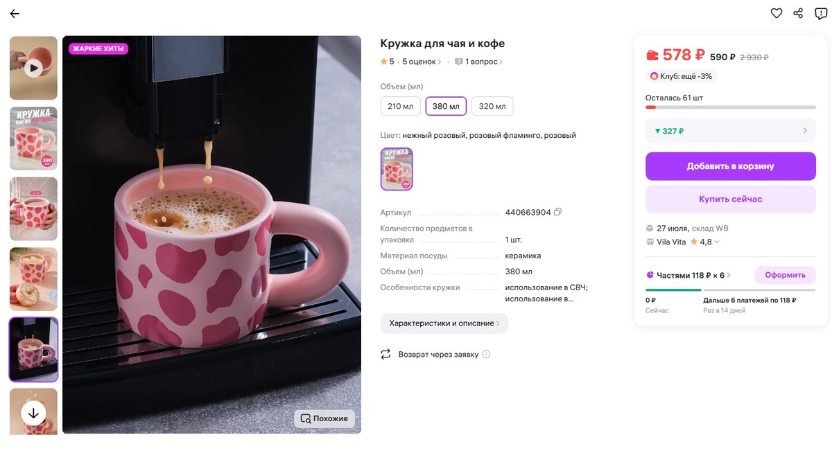 ✨ Хочу подчеркнуть: я ничего не продаю и не навязываю - просто делюсь тем, что нравится мне. Пусть эта подборка станет для вас источником идей и хорошего настроения! Доброе утро, дорогие подписчики! Дом - это место, где хочется чувствовать тепло, комфорт и красоту. Иногда для создания уюта достаточно пары деталей: красивой вазы, мягкого пледа или стильного постера на стене. Я собрала для вас девять вещей, которые помогут преобразить интерьер, добавить в него атмосферу и вдохновение. Все они доступны на Wildberries и уже получили множество положительных отзывов. Представьте утро с ароматным кофе в стильной керамической кружке. Она большая, вместительная и выполнена в актуальном дизайне - отличный аксессуар для кухни. Такая кружка станет не только любимой посудой, но и украшением интерьера. Артикул: 440663904 Хотите быстро обновить интерьер? Добавьте пару стильных наволочек! Эта модель выполнена с использованием хлопка, имеет приятную фактуру и незаметную молнию. Наволочка украшена бахр
