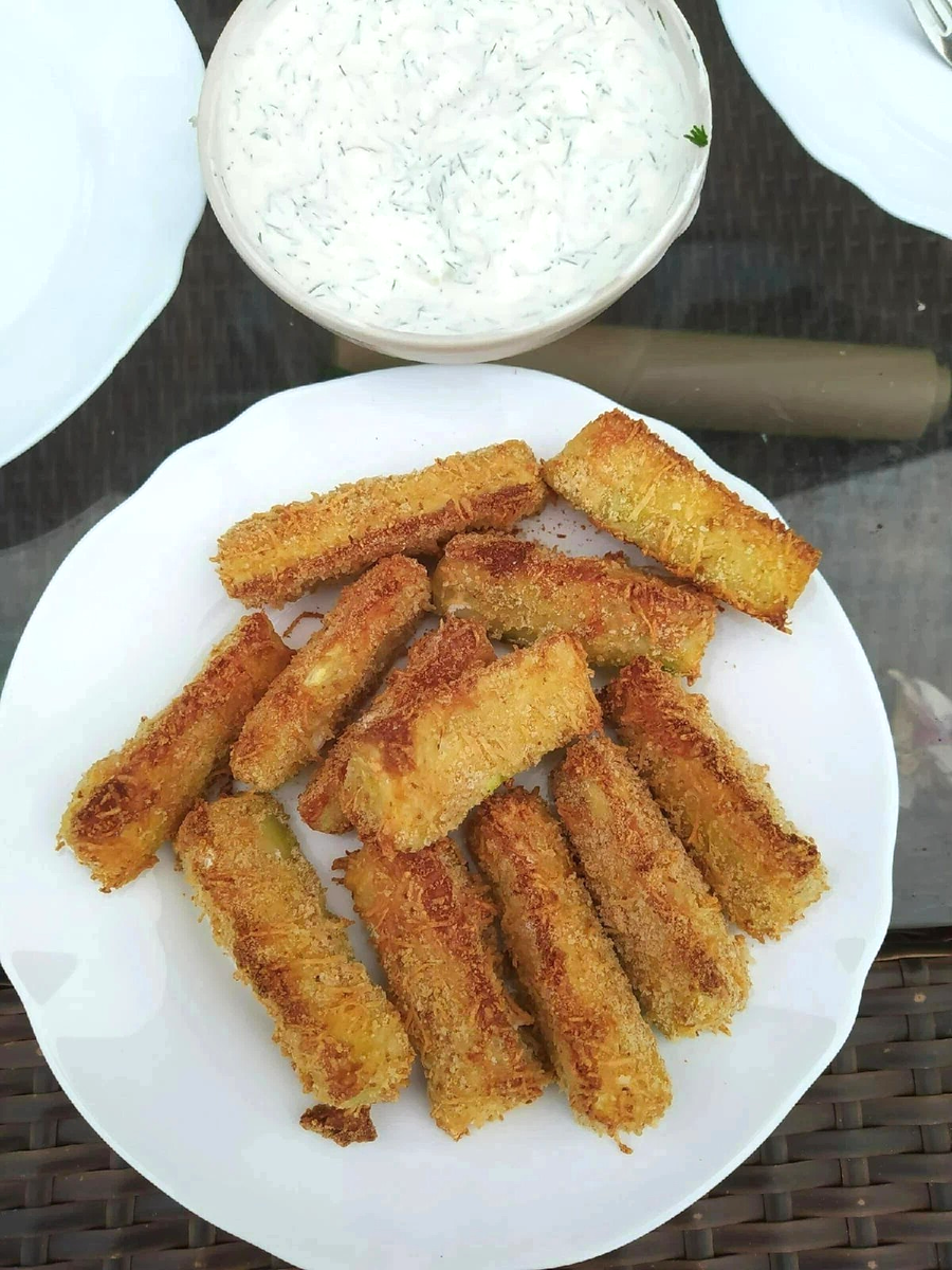 Хрустящие кабачковые палочки в сухарно-сырной панировке
