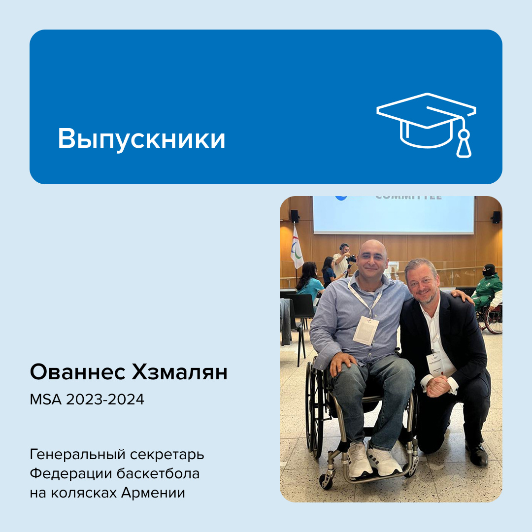 Ованнес Хзмалян — генеральный секретарь Федерации баскетбола на колясках Армении и выпускник РМОУ из Армении — вошел в число 75 участников четвертого Форума паралимпийских спортсменов Международного паралимпийского комитета. Мероприятие прошло в Бонне с 24 по 26 июня.