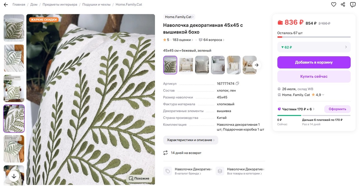 Обновить интерьер без больших затрат легко - достаточно добавить несколько акцентов. Например, декоративная наволочка 45х45 см с приятной фактурой и аккуратной потайной молнией. Она легко надевается на подушку и подходит для наполнителей размером 45х45 или 50х50 см. Ткань мягкая, но плотная, а бахрома с кисточками придаёт изделию стильный вид. Такой аксессуар прекрасно впишется в интерьер в стиле бохо, сканди, прованс или минимализм. Наволочка станет отличным подарком, ведь упакована она в аккуратную коробку.
