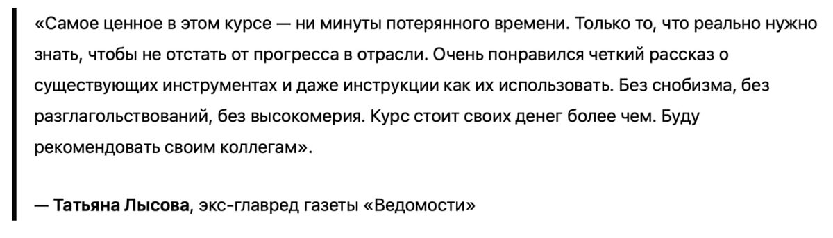 Такими отзывами я очень дорожу. * Завтра повышаются цены на этот курс.
