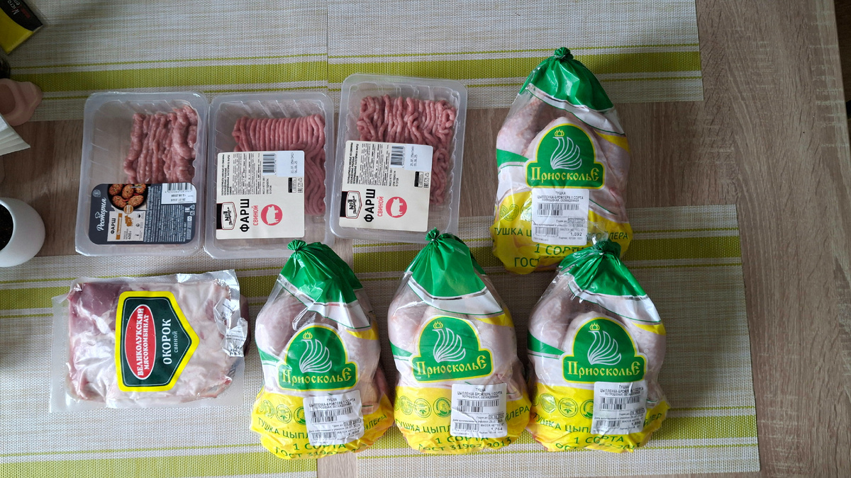 Доброго дня! С 1 августа я решила более детально подойти к нашему меню и подкопить денег. Я наконец-то решила сделать коррекцию зрения, с ношением линз начались проблемы, а в очках далеко не всегда удобно. Наша семья состоит из двух человек - я и муж. Ах, да, и наш любимый кот 🐱 На август рыжему было всё закуплено ранее, прививки не раньше осени. Поэтому под разумное потребление попадём только мы 😁 Что было дома из продуктов на 31.07: Учитывая что холодильник не пустой и есть запасы круп, акцент сделала на курицу, мясо - для приготовления первых и вторых блюд. Обед в будни - обязательно первое (мужу на работу). Ужин - вторые блюда. С завтраками у нас всё просто - мужу собирают бутерброды, я с утра есть не могу, это "кусовничество". Но обязательно вода, чай и последнее время, после чая -кофе. Заканчиваю предисловие и перехожу к покупкам) Курица, мясо: Давно не покупала целую курицу, решила что попробую такой вариант. Тут сразу и на супы, и филе, и запечь. Овощей не много, по плану