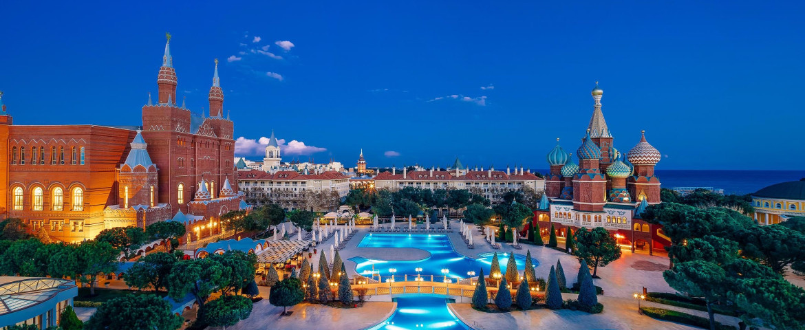 В 2003 году турецкие девелоперы решили удивить мир и построили... точную копию Московского Кремля и храма Василия Блаженного! На месте Красной площади - бассейн, вместо правительственных заседаний - зажигательная анимация, а охрану ФСО заменяют приветливые турецкие официанты.