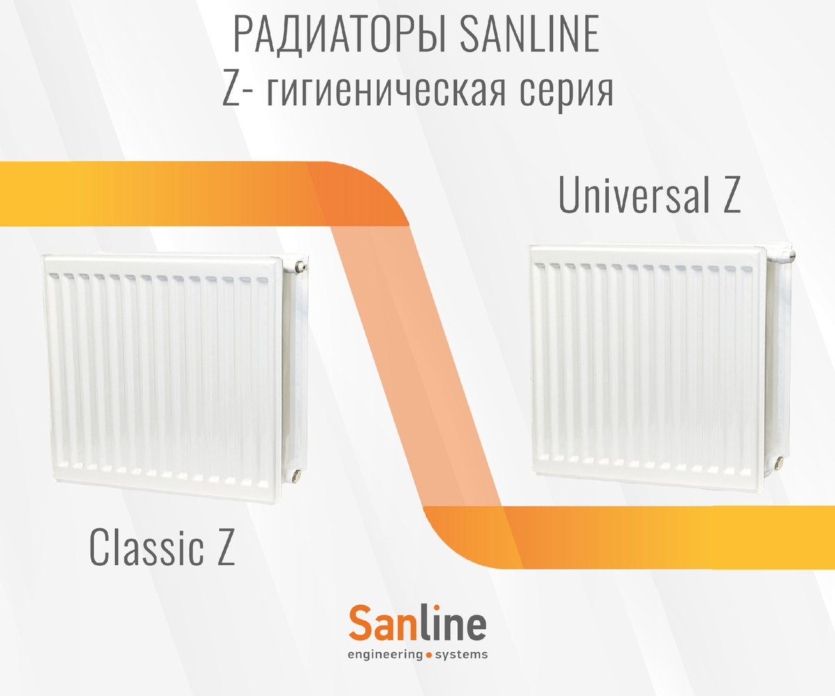 → Модели Classic Z и Universal Z — выбор под вашу систему. Увеличенная глубина кронштейнов – для облегченной уборки пыли. · Типы: 10, 20, 30 · Высота: 300–500 мм · Длина: 400–3000 мм · Рабочее давление: до 10 бар · Гарантия: 10 лет · Цвет: RAL 9016 (белый) или любой под заказ 🔎 Sanline Z — ваш выбор, если важна чистота.