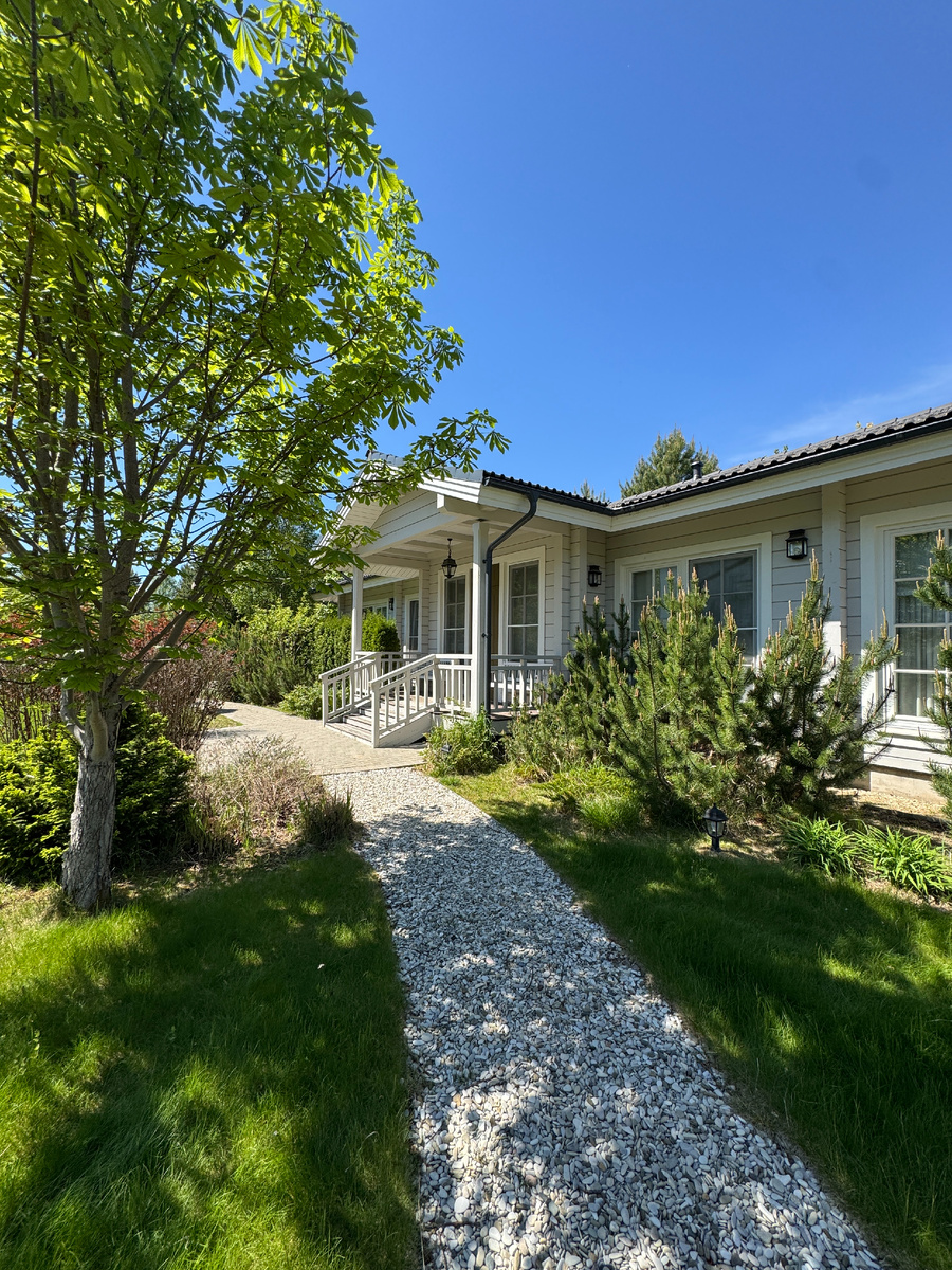 Этот одноэтажный дом площадью 106 м² внучка построила для любимого дедушки — чтобы он был рядом, но имел своё собственное, уютное пространство.