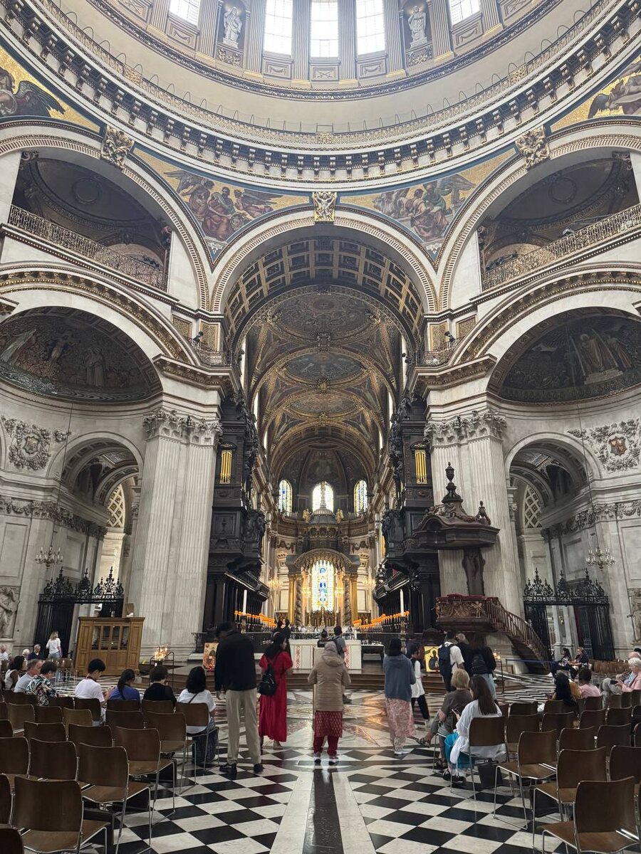 Собор Св. Павла для меня знаменит не столько как памятник британскому величию, а как место, где Хью Грант бегал в образе монашки в «Паддингтона 2» и из «Никогде» Нида Геймана 😹 Это, конечно, впечатляющий результат творения человеческих рук и памятник эпох. Очень пышно и красиво, прям могущественно - такой и была цель при создании. Я попала и на коротенькую молитву, перед которой надо было причаститься телом и кровью Христовой - просфирой и кагором. Забираться после этого на 500 ступенек вверх было смелым решением 😹 Тем более, что самая высокая Золотая Галерея - это ты выходишь, делаешь шаг и упираешься в перила. Человек с боязнью высоты там просто падает в бездну. Я кралась по стене, смотря в одну точку - второй раз бы не повторила! Вполне достаточно вида и с Каменной галереи, откуда я и сняла фото-видео 🙈 На иконе и есть Св.Павел, один из апостолов и строителей церкви. Внизу по центру - мост Миллениум, где бегали Джеймс Бонд и Гарри Поттер. А последнее фото - та самая Золотая га