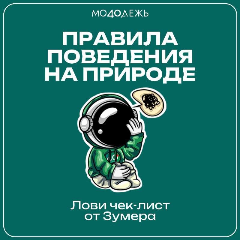 Отдыхай с умом! 🌱 Свежий воздух, красивые пейзажи и пение птиц — что может быть прекраснее во время отдыха на природе? Но часто мы забываем о том, что природа требует бережного отношения! Космонавтик Зумер подготовил для вас важные правила, которые необходимо соблюдать, находясь на природе! ‼️ Помните, что безопасность и уважение к природе — залог отличного отдыха! #УМП40 #Молодёжь40 #Тема_дня_правила_на_природе