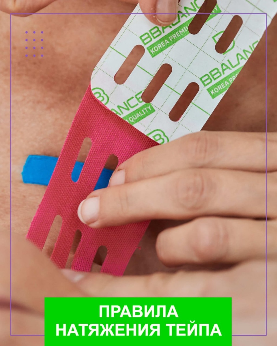 🌀Правила натяжения тейпа🌀 Наверняка, вы знаете, что кинезио тейп — это эластичная лента, примерно на 3% содержащая эластан, который обеспечивает растяжимость. Но до какой степени тейп можно тянуть? И можно ли вообще? ❗️Все зависит от целей и задач процедуры, а еще от участка тела, на который накладывается аппликация. Давайте разбираться! Итак, ✔️Для мышечного тейпирования оптимальное натяжение — до 25%. ✔️При суставном тейпировании лента растягивается обычно до 50%. ✔️ Лимфодренажное тейпирование требует отсутствия натяжения — 0%. ✔️В эстетическом тейпировании, например на лице или шее, аппликация также наносится без натяжения. 📌Тейп с натяжением до 50% создает эффект лифтинга и декомпрессии тканей, снижая нагрузку на рецепторы, тогда как растяжение более 50% усиливает нагрузку и создает компрессионный эффект. ❗️ Первые 3 см тейпа (так называемый «якорь») всегда накладываются без натяжения, вне зависимости от схемы применения. Кроме того, при наложении аппликации следуе
