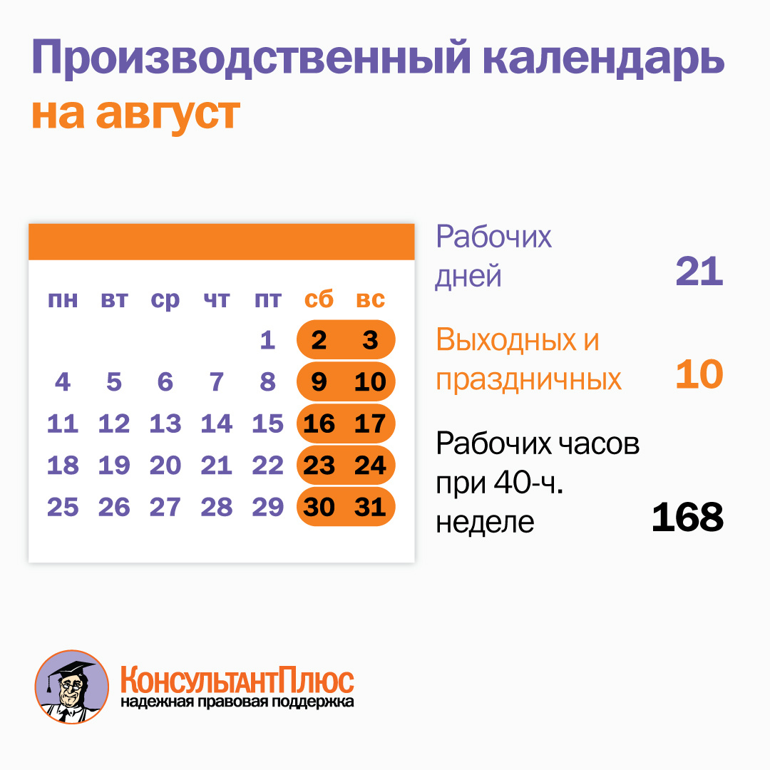 #консультантплюс #производственныйкалендарь #август2025