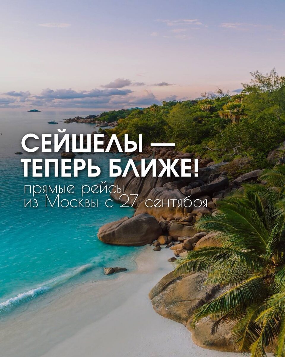 Расскажем кратко в картинках про главные острова Сейшел! * "Кстати, прямо сейчас у нас есть невероятные предложения на Сейшелы с вылетом 08.10 на прямом рейсе Аэрофлота! Это эксклюзивные пакеты (перелет, 7 ночей, питание, трансфер, страховка) по ценам, которые вы не найдете нигде больше!" * "Мы подобрали несколько вариантов отелей – от уютных 3* до роскошных 5*, чтобы каждый нашел свой идеальный вариант." * "Мы публикуем такие предложения ТОЛЬКО в нашем Telegram-канале, потому что они разбираются очень быстро." Не упустите свой шанс на отдых мечты! Все подробности этих эксклюзивных туров на Сейшелы, а также другие горящие предложения и лайфхаки для путешествий – ждут вас в нашем Telegram-канале! 👉 Переходите по ссылке и подписывай