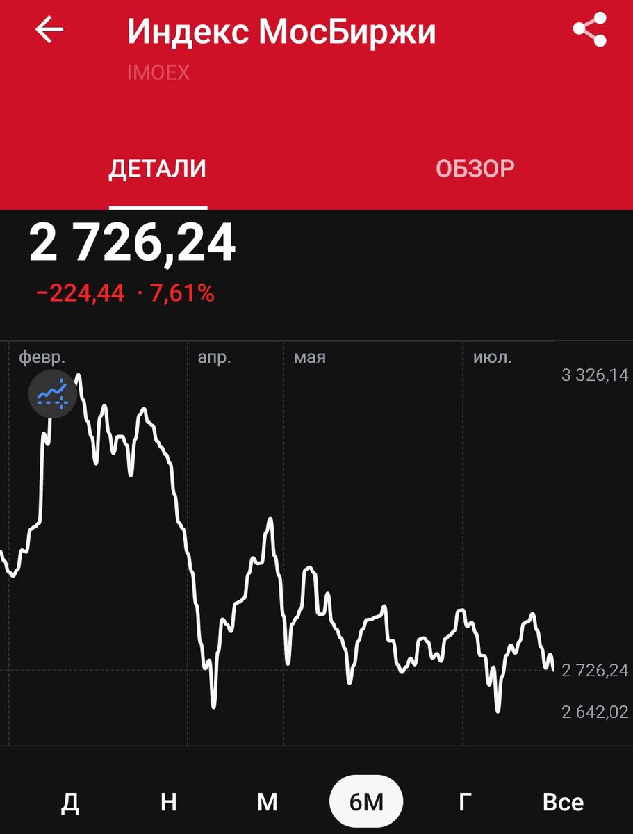 📌 В последнее время больше времени уделял рынку облигаций, поэтому сегодня справедливо будет поговорить об акциях – поделюсь своими мыслями о рынке, и расскажу, чего я жду, чтобы начать увеличивать свои позиции в акциях. • Как показывает динамика индекса Мосбиржи в 2025 году, лучшей стратегией спекулянтов является покупка акций при значениях индекса 2650-2700 пунктов и продажа акций при 2800-2850 пунктов. Несмотря на разницу между уровнями покупки и продажи всего в 6-8%, некоторые акции меняются в цене на 15-20%. • Учитывая, что июльские выплаты дивидендов снизили индекс на ≈85 пунктов, сейчас хорошим моментом для покупки акций может стать состояние рынка при индексе около 2600-2650 пунктов (сейчас ≈2720 пунктов). При этом здесь откроются хорошие возможности не только для среднесрочных сделок, но и для долгосрочных инвесторов. • Почему мы можем увидеть дальнейшее снижение рынка с немалой вероятностью? Ответ прост – геополитика, а именно обещанные Трампом санкции. В прошлые разы, когда