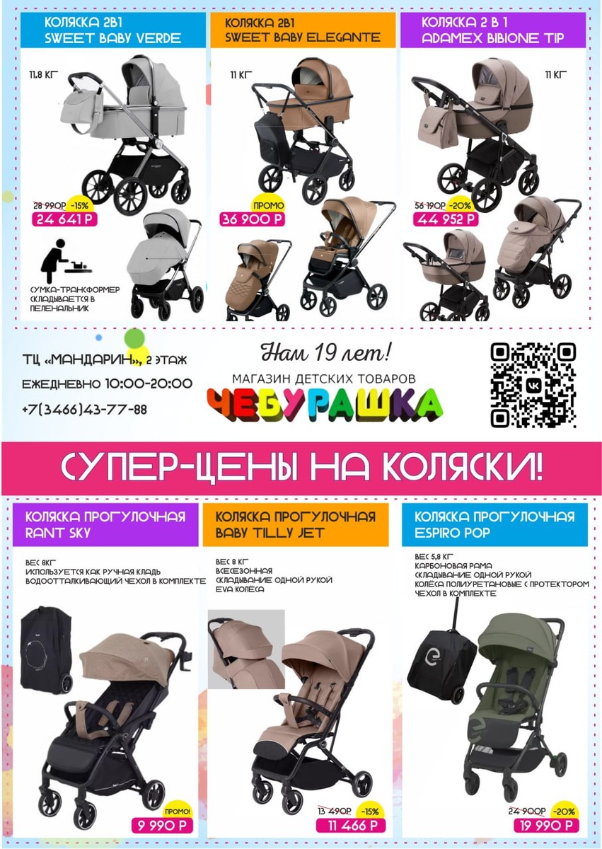Уже 19 лет магазин «Чебурашка» радует своих покупателей широким ассортиментом колясок на любой вкус и кошелёк! 🎈🎈🎈А в честь Дня рождения, решили порадовать вас ещё и СУПЕР-ЦЕНАМИ!💯 ✨Спешите за коляской своей мечты в магазин детских товаров «Чебурашка»! Модели в наличии и на заказ от лучших фабрик! ✅Следите за постоянным обновлением ассортимента в группе ВКонтакте! 📍ТЦ «Мандарин», 2 этаж