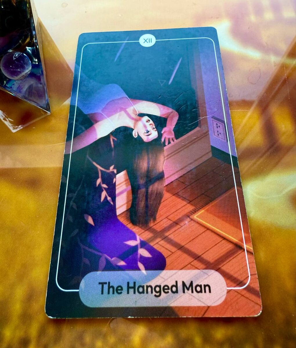 Сегодня не будет слов о жертве. Сегодня будет о прорыве. Представь: мир вверх ногами. Всё, что казалось очевидным, вдруг теряет форму, а вместо этого… открывается новое измерение. Повешенный — это не всегда про бездействие. Это про другой угол зрения, про то, как ты смотришь на жизнь, когда больше не хочешь видеть её так, как раньше. Ты не жертва. Ты — наблюдатель, который отцепился от суеты, чтобы увидеть истинное. Если обычный человек смотрит на апельсин — он видит фрукт. А Повешенный видит форму жизни, сферу опыта, источник вкуса, цвета, структуры, он замечает то, что другие даже не думают замечать. Он не в системе. Он вне. Именно поэтому с ним порой трудно. Он странный, он «не как все». Скажи, если кто-то скажет тебе, что небо — красное, ты поверишь? А если он скажет, что солнце — зелёное? Ты рассмеёшься? Или… усомнишься? Вот она — территория Повешенного. Он мыслит необычными контурами. Он расширяет рамки. Да, он может казаться безумным. Потому что он вынырнул из матрицы в
