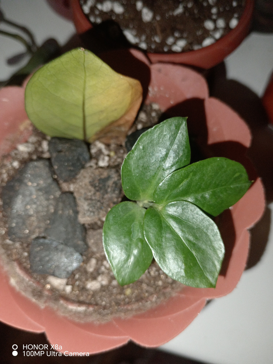Сегодня хочу рассказать Вам о своих наблюдениях за своим замиокулькасом, как его ещё называют "классический". Но сейчас немного предистории. Увлеклась замиокулькасами(замика и) не так давно, около трех лет назад. Ко мне пополо в руки парочка листочков классического замиокулькаса, ещё важное замечание, что листочки были без бульбы и корней, т. е. абсолютно не укоренненные. Посадка была в обычный цветочный грунт, без удобрений и в большой горшок. Так сидели листочки около одного года и не понимала почему замиокулькас не растёт. Постепенно начала изучать, просматривать видео обзоры про замиокулькас и поняла, что не правильно выращивала, поэтому кроме листочка ничего не появлялось, не было ни корней, ни тем более бульбы, не говоря уже о каком - то росте. Решила исправить ошибку и пересадила совсем в тесный маленький стаканчик и стала удобрять растение, но не увлекалась. Спустя время появились корни, бульба и затем вышел пуньк(росток). Но поразил не результат, а факт того, что все блогеры