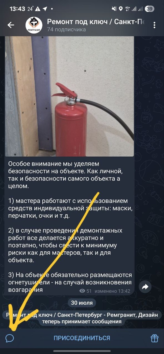 Уважаемые подписчики и гости канала! Теперь вы можете писать сообщения руководителю компании Ремгранит прямо из канала. Для этого необходимо просто нажать на значок сообщения в нижнем левом углу.