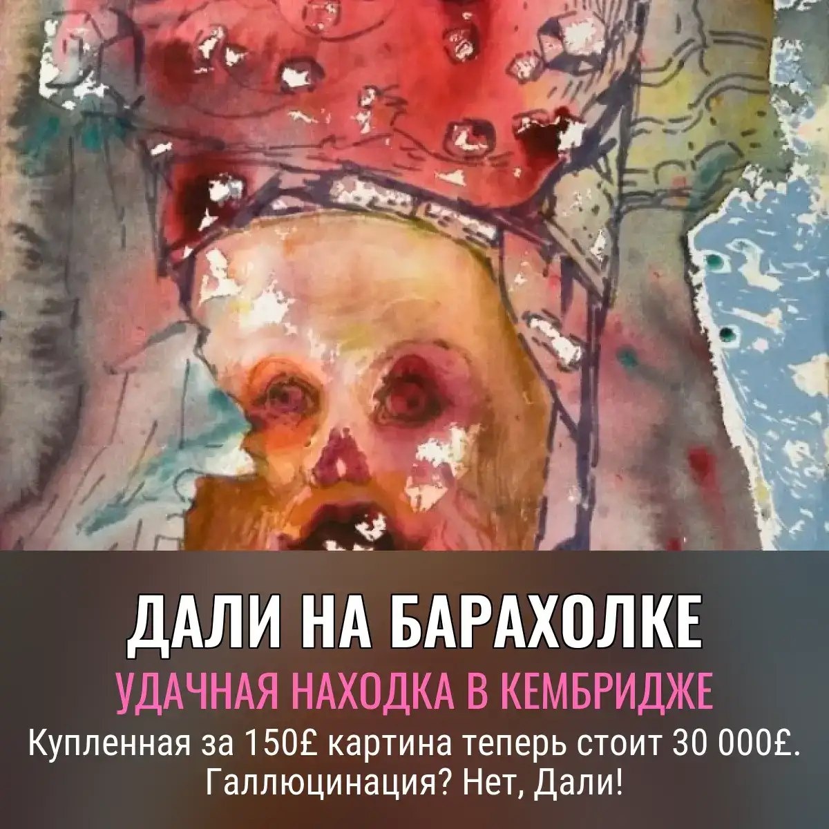 Когда смотришь на свой бесполезный хлам и думаешь, кому нужны эти завалы, вспомни: какой-то коллекционер в Кембридже купил уставшую картинку на барахолке за £150, а она оказалась оригиналом Дали! 🤯 Официально подтвердил подлинность сам эксперт Николя Дешарн. Теперь акварельно-фломастерная сцена из «Тысячи и одной ночи» выставляется за £30 000. Вот что значит — «удача любит смелых и слегка малоимущих». К слову, раньше динозавра за $30,5 млн уже продали. Ну а мы что? Всё ещё ищем своих Дали среди пыльных свитеров и кассет «ВИА Гра»., Следите за новостями 📩