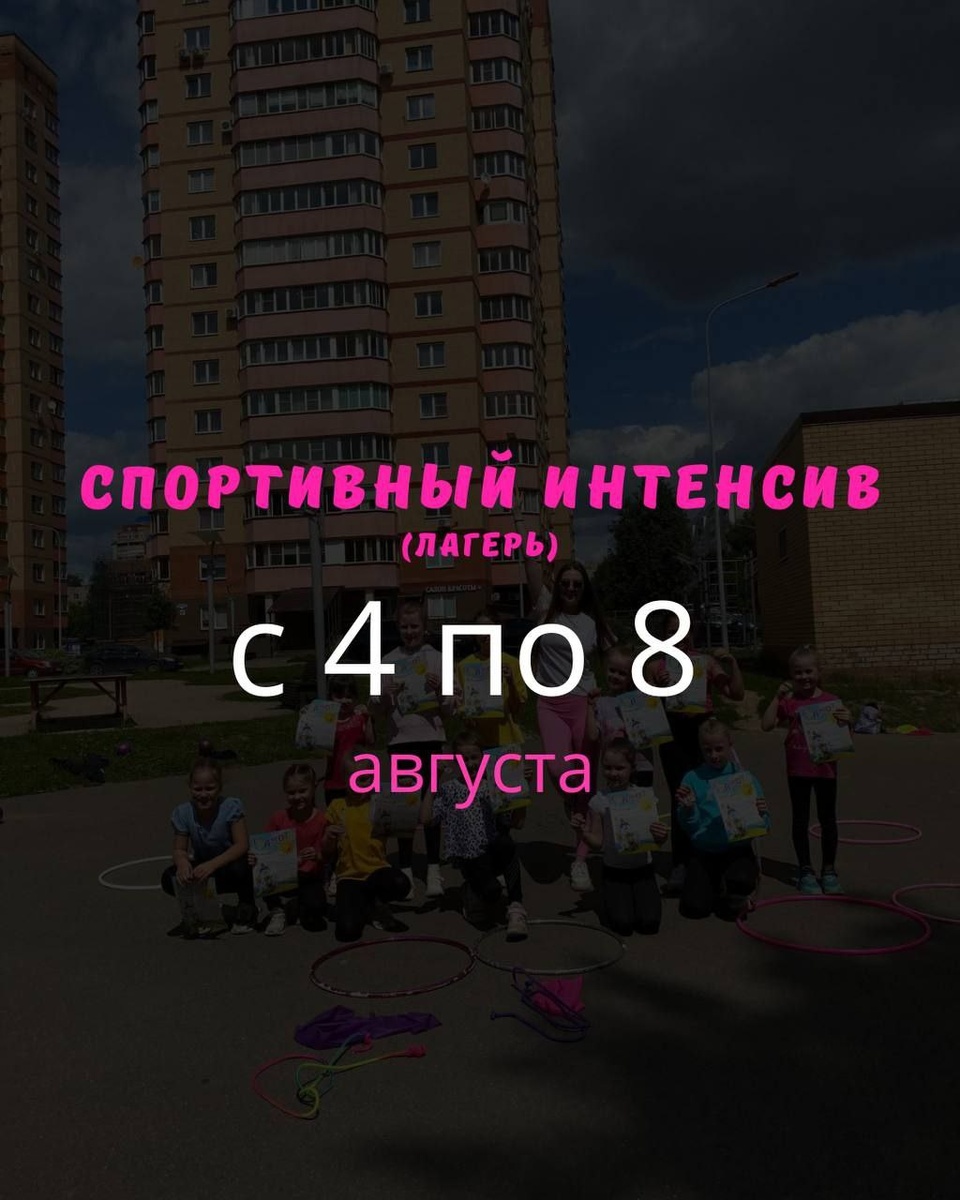 ✨Спортивный интенсив с 4 по 8 августа ! 🔥 В прошлый раз детям было мало и они просили подольше остаться , мы делаем полностью дневной интенсив !😍 И хотим пригласить всех желающих. С 10 до 17:00 1 день - 2000р ( 1 тренировка ~ 280р ) 5 дней - 8000р ( скидка 2 тыс ) ❓Кому подойдет ? - абсолютно всем, даже если ваш ребенок не занимается спортом. Подберем нагрузку под каждого. Это как летний лагерь для детей только с пользой 😍🔥 ❓Что входит ? - тренировки в зале - прогулки на детской площадке - питание от сертифицированного поставщика ( оплачивается отдельно ) - отдых и просмотр мультфильмов - тренировки на свежем воздухе - творческие мастер классы - подарки от СК «Стремление» 💌Остались вопросы или готовы записать ребенка ? - пишите https://t.me/SKstremlenie 🏢 Спортивный клуб "Стремление" 📍 г. Чехов, ул. Лопасненская, д. 5 ⭐Разместить публикацию ⭐Поддержать канал голосом #webЧехов ✅ Мероприятия Чехов https://dzen.ru/id/66cc4b48e9ef144699238a51 http://vk.com/chekhov_events htt