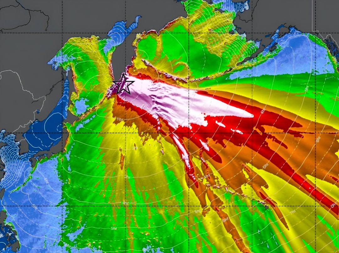 Цунами, расходясь веером, продолжает торжественное шествие по Тихому океану. Оно слишком долго ждало своего выхода!