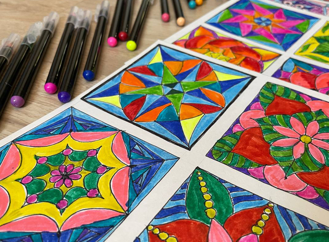 Расчертите листы бумаги на квадраты, потом добавьте диагонали в каждом квадрате, для облегчения создания красивых симметричных узоров. Эти рисунки, как и сам процесс рисования должны вам нравится.