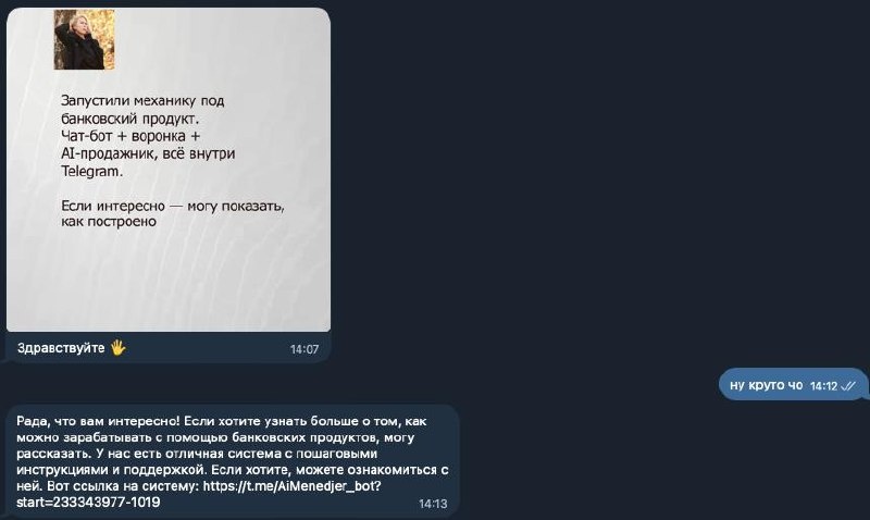 Типичный ИИ продавец ИИ продавцов Обещают чудо воронку, но сами не могут ИИ продавца настроить чтобы хоть как-то корректно отвечал. Если вам нужен ИИ ассистент, приходите в ApiMonster - мы подберем реалистичный вариант Нам важно чтобы работа с вами была в долгую, поэтому предлагаем только рабочие варианты или сразу говорим что ничего хорошего не получится.