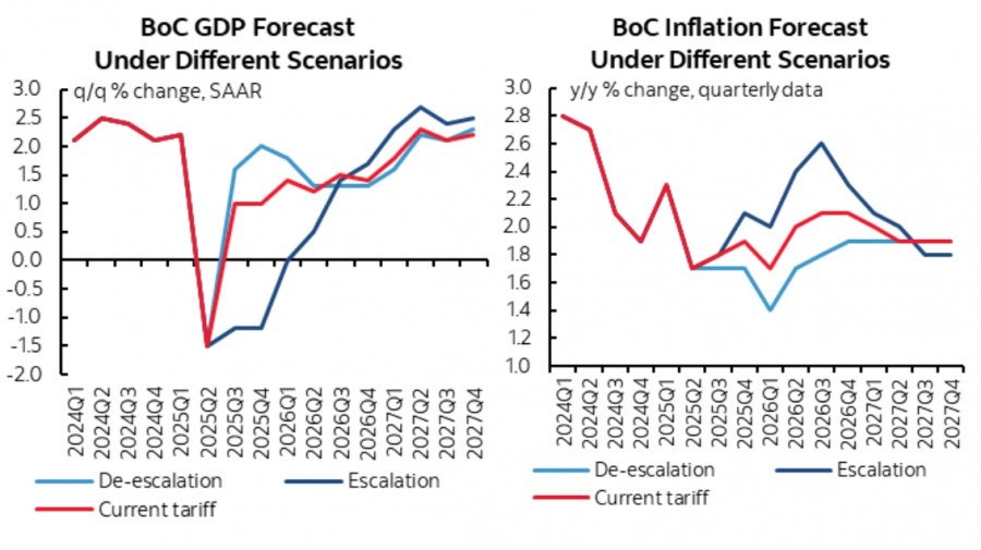 https://basechop.ru/wordpress/?p=51950 Заседание Банка Канады в среду ожидаемо завершилось сохранением ставки овернайт на уровне 2,75%, сопроводительное заявление не содержало каких-либо очевидных намеков на дальнейшие действия. Доходность краткосрочных облигаций Канады практически не изменилась, рынок получил ровно то, что и ожидал. Глава BoC Маклем на пресс-конференции пояснил, почему Банк решил ничего не предпринимать. Во-первых, это неопределенность относительного торгового соглашения с США, переговоры продолжаются, и с учетом непредсказуемости Трампа она вряд ли исчезнет в близкой перспективе. Во-вторых, экономика Канады пока выглядит устойчиво и необходимости к решительным действиям нет. И в-третьих, неопределенность с инфляцией сохраняется, несмотря на то что текущий уровень инфляции близок к таргету 2%, базовое инфляционное давление демонстрирует признаки усиления. Дополнительно Банек Канады представил три сценария развития ситуации в будущем, которые учитывают весь возможный